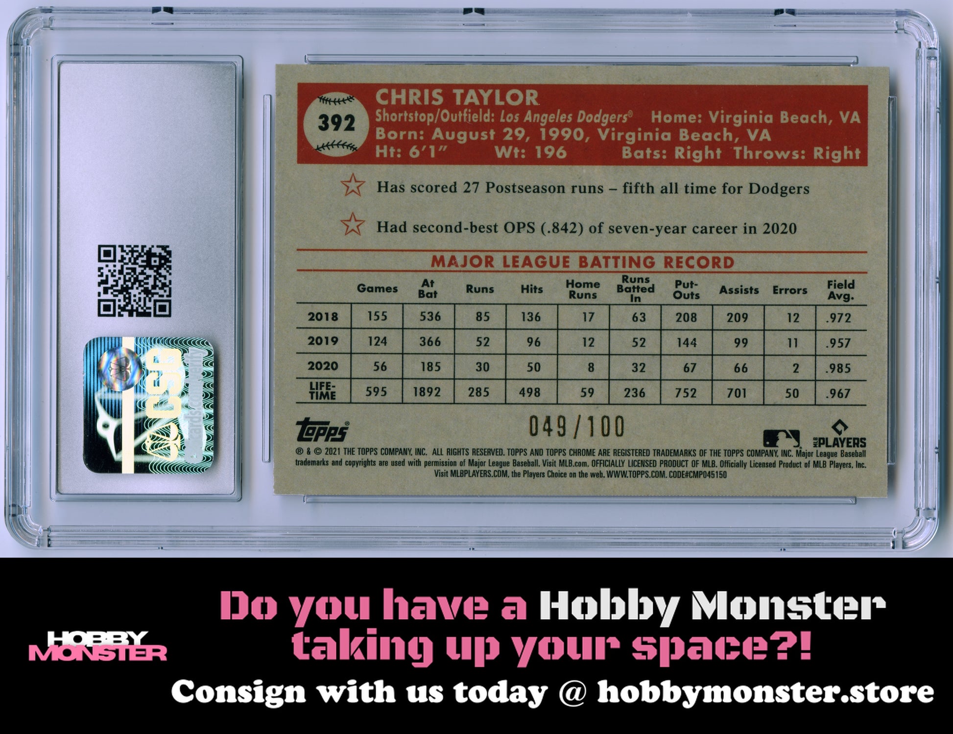 2021 Topps Chrome Platinum Chris Taylor Red Atomic #/100 Dodgers CSG 10